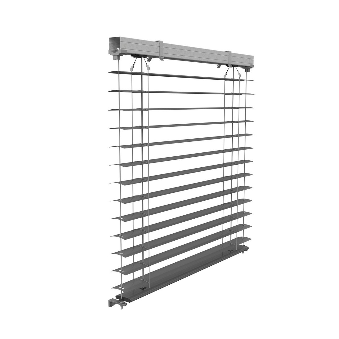 Frangisole con guida laterale mediante binari o con corda. Le lamelle di SKY possono essere movimentate in maniera estremamente precisa, per garantire sempre un perfetto ombreggiamento e un isolamento acustico ottimale. Caratterizzato da una veletta ad altezza ridotta e da un design elegante e raffinato.
